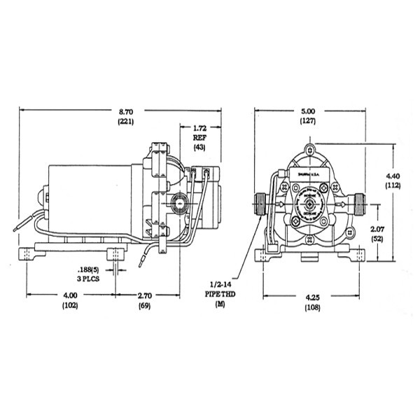. 95 0 bids +. 55 shipping. Items are matched to the number on the image. The new shurflo 4008 took the place of 2008. Shurflo 2088 403 144 wiring diagram wiring for shurflo 2088 403 444 2 12 volt wires at the rear of the pump. Shurflo® 2088 series diaphragm pumps deliver reliable performance in high flow, moderate pressure applications. They are used in a variety of spraying and transfer applications that require flows of up to 4. 0 gpm [14. 4 l/min]. They can be mounted in any position, and are designed for easy maintenance. It is based on running continuously with an ambient temperature of 70 f in still air. The thermal breaker will open when the case temperature reaches 230 f.